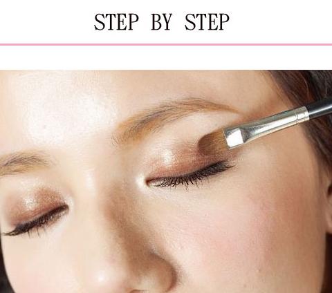 根部涂咖啡眼影, 笔刷向上晕开,眼影范围不超过眼窝。